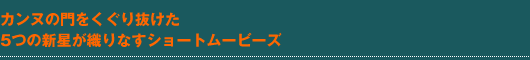 『カンヌSHORT5』では、ここ数年のカンヌ国際映画祭短編部門で上映され高い評価を得た作品の中から、ヨーロッパを中心にセレクトしてみました。