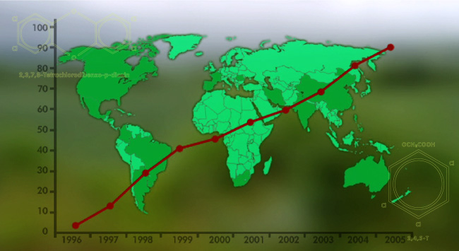 モンサント社は、アメリカで1901年に設立され、世界46カ国に進出している多国籍バイオ科学メーカー。ポリ塩化ビフェニル(PCB)、枯れ葉剤、牛成長ホルモン、除草剤ラウンドアップ、遺伝子組み換え作物の開発企業として知られます。製品はどれも人体や環境への悪影響で世界中で問題を起こしてきました。